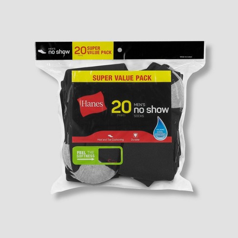 Hanes Men S Lightweight Comfort Super Value No Show Socks 20pk Black Gray 6 12 Target